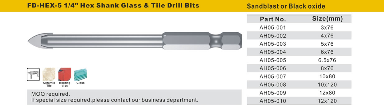 1/4" Hex Shank Glass & Tile Drill Bits